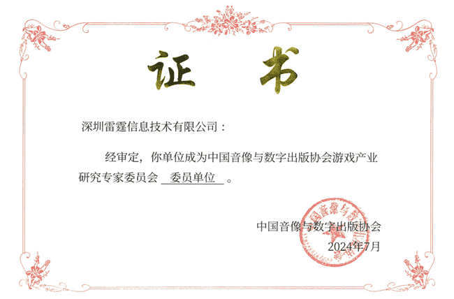 2024年7月25日,,中国音像与数字出版协会游戏产业研究专家委员会(以下简称“中国音数协游戏专委会”)成立大会在上海市召开,,厦门LEWIN乐玩网络技术股份有限公司及其子公司深圳雷霆信息技术有限公司(以下统称“公司”)正式成为中国音数协游戏专委会委员单位。。。。