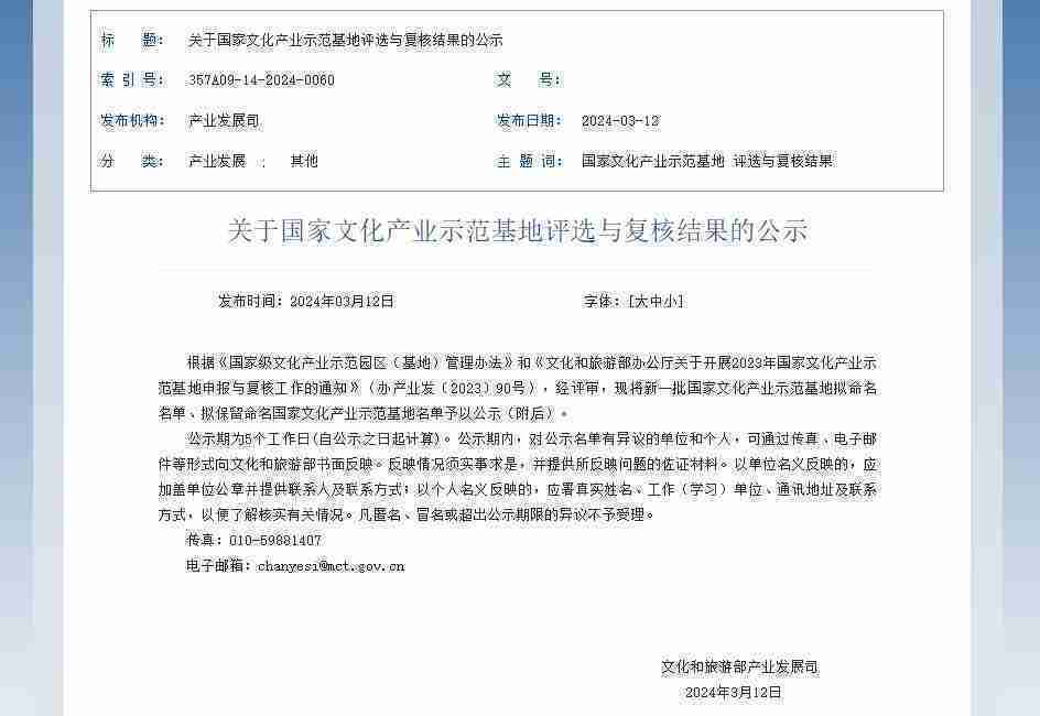 3月12日,,文化和旅游部发布了《关于国家文化产业示范基地评选与复核结果的公示》,,厦门LEWIN乐玩网络技术股份有限公司(以下简称“LEWIN乐玩”或“公司”)成功入围新一批国家文化产业示范基地拟命名名单。。。。